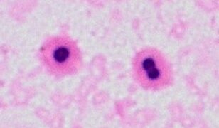 図1 写真は、Trichosporon asahiiのグラム染色. Trichosporon asahiiは酵母様形態~偽菌糸様、菌糸様形態をとる。 仮性菌糸および菌糸、出芽型分生子は1細胞性で形は多様である。分節型分...