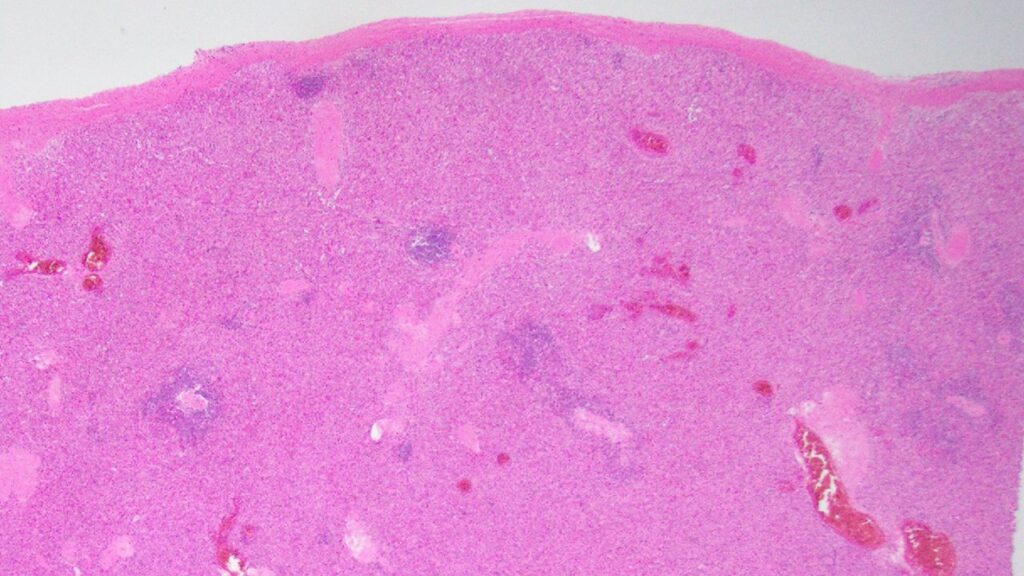 脾臓は末梢組織最大のリンパ装置である。免疫応答に関連するとともに、体内の血液中を循環する血球を補足、処理し、血液を濾過する機能を有する。組織学的には、細網組織、白脾髄(リンパ球の集まり)、赤脾髄(赤血球の集まり)、周辺帯により構成される(HE染色)。